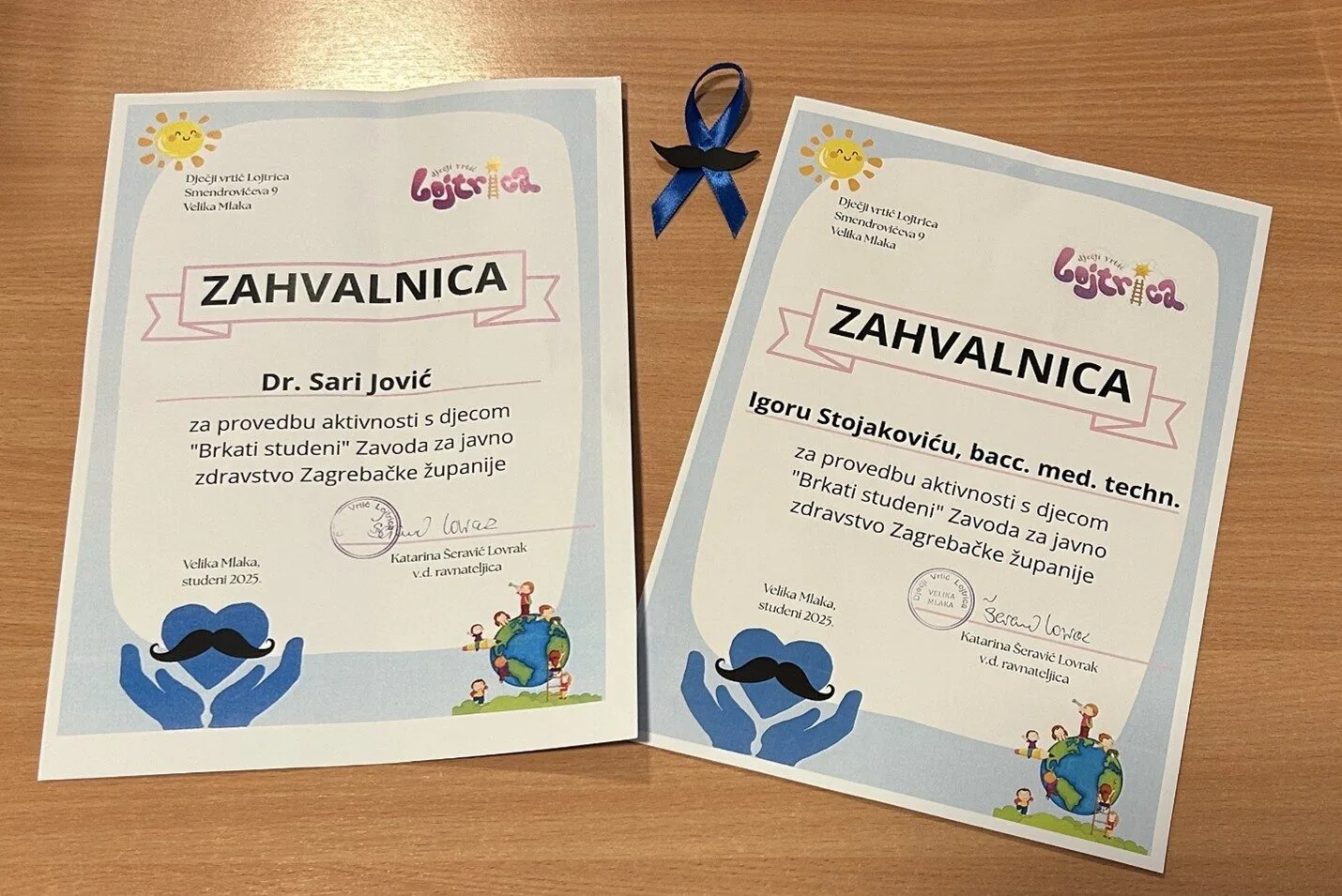 Povodom Movembera, mjeseca posvećenog podizanju svijesti o muškom zdravlju, Zavod za javno zdravstvo Zagrebačke županije organizirao je posebnu edukativno-kreativnu akciju u Dječjem vrtiću Lojtrica. Cilj nam je bio približiti najmlađima važnost očuvanja zdravlja na način koji im je razumljiv i zanimljiv.